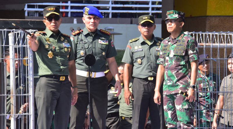 Gladi bersih HUT TNI di Makassar yang bertemakan “ TNI Patriot NKRI Pengawal Demokrasi Untuk Indonesia Maju “tersebut ditinjau langsung oleh Pangdam XIV/ Hasanuddin oleh Mayjen TNI Dr. H. Totok Imam Santoso, S.I.P., S.Sos., M.Tr.(Han) dan sejumlah pejabat utama TNI Makassar lainnya.